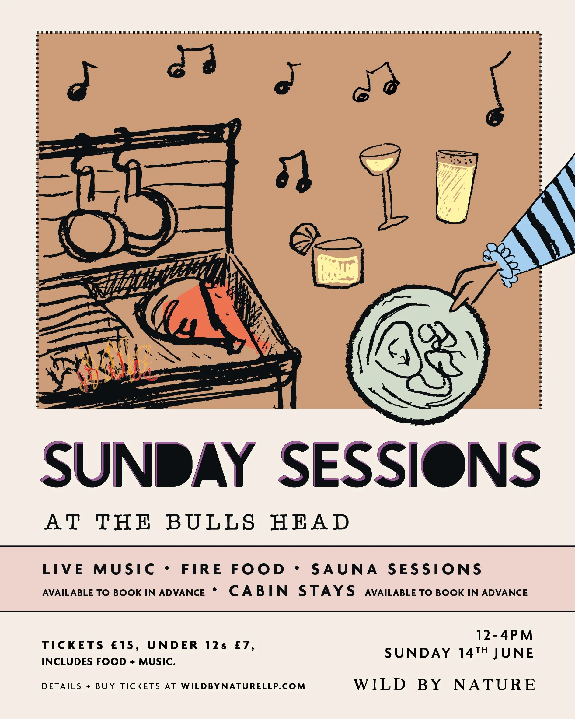 Join us for the first Summer Session at The Bulls Head. Live music, food from the fire, bookable sauna sessions, and cabin stays.